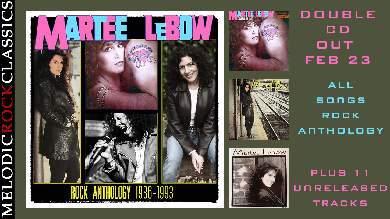 ![]() And to sweeten the deal, the 2CD set includes Martee's out of print 1993 three track EP plus 11 previously unreleased bonus demos. The double compilation 'Rock Anthology (1986-1993)' will be released February 23. About Martee LeBow: Martee LeBow is an acclaimed recording artist, singer/songwriter from upstate NY. She taught herself to play the piano at age 3 and began writing songs at 10. In her teens she recorded her first album, "The Lady Wants To be A Star" produced by Charlie Calello, featuring NYC session royalty including Will Lee, The Brecker Bros, John Tropea and Jeff Mirinov. She supported the critically acclaimed release of that debut album with a nationwide tour before moving to NYC to continue to play her brand of bluesy rock in the clubs with her band. In the 80s Martee signed with Atlantic Records and released "Crimes of the Heart" EP (prod. Robbie Buchanan) and "Love's A Liar" album (prod. John Jansen). Martee has collaborated with some great writers including, the late, great Keith Reid (Procol Harum) and Grammy award winner Will Jennings ("Roll Away", a sentimental favorite recorded by Dusty Springfield on her very last album). She has also had a successful jingle career, singing on many commercials over the years such as Coke, Folgers, Budweiser, JC Penney, AT+T, Mercedes Benz, Sears, Dominos, Mc Donald's, Charmin', and Dannon, just to name a few. As a background singer, she has supported other artists, including recording and traveling the globe with world music band, Alabina and Ishtar (singing in 5 languages!) Her favorite gig for many years, has been as lead singer of The Mar-Tays, a slammin' A-list NYC band with Irwin Fisch, John Siegler, Frank Vilardi, Ira Siegel, Larry Saltzman, and Robbie Kondor. Most recently, she is very excited about the in-development show ”Last Night at the Rue Bayou”, for which she is the musical composer. https://www.ruebayoumusical.com Martee describes herself as ”still having too much fun!” CD1: Crimes Of The Heart (1986) & Love's A Liar (1987) 01. Crimes Of The Heart 3:47 02. Stranded in the Moonlight 3:43 03. Love Just Ain't Enough 3:32 04. One Down 3:43 05. Hearts Of Stone 4:12 06. Where Do I Stand 3:34 07. Another Lonely Heart 4:04 08. Love's A Liar 4:04 09. Maybe You'll Remember 3:31 10. Learning The Hard Way 3:30 11. Hang On (To My Reckless Youth) 4:04 12. Fallen Angel 3:45 13. Forbidden 5:05 14. I Must Be In Love 3:58 15. One Good Reason 3:18 CD2: Roll Away (CD Single) & Unreleased 01. Roll Away 4:31 02. Gone 3:05 03. Sail On 3:53 Unreleased Bonus Tracks: 04. Written In Stone 4:03 05. Running Out Of Time 4:24 06. Lost To The City 3:36 07. Remember Me 4:27 08. Crest Of A Wave 3:34 09. The Real You 4:23 10. Shade Of Green 3:50 11. Moonshine 3:17 12. Under The Sun 4:13 13. Hurtin You 3:36 14. In Your Own Backyard 4:06 |