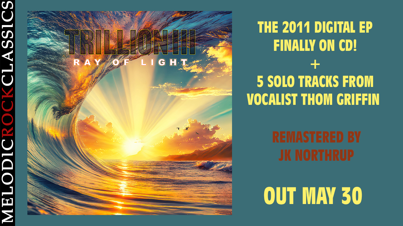 ![]() Trillion III 01. Ray of Light 02. Golden Sun Beyond 03. She Hates Sunday 04. In My Blood 05. Innocence Thom Griffin 06. One Last Time 07. How Long 08. One Fine Day 09. Eight Get Bye 10. Stand By My Side MelodicRock Classics is honoured to partner with classic pomp-rockers Trillion for a physical release of their acclaimed 2011 EP 'Trillion III'. For this occasion, the release will be re-titled 'Ray Of Light' and feature brand new artwork by resident MRC graphic artist Nello Dell'Omo. The songs were written and recorded by early band members Thom Griffin, Frank Barbalace, Bill Wilkins and CJ Vanston as well as additional keyboards by founding member, Patrick Leonard and bass by Dave La Rue. As a very special bonus, we are adding 5 solo tracks from singer/songwriter Thom Griffin to round out the release. The 5 singles were individually released digitally by Thom over over the last several years, haven't yet been cemented into history with a physical release. Bill Wilkins sums up the band's feelings: “I had always wanted to pick it up again and just see what might happen. After a number of years and a move back to Chicago I decided to test the waters and see if there was any interest. Thom Griffin, Frank Barbalace and I met together at a drum clinic given by Steve Smith of Journey fame. It was the first time we'd been together in the same room in years. We weren't sure if there would be anything like the chemistry we had in the past but we were excited to find out. We hope you'll feel the same energy and excitement that we felt writing and recording the five songs that the three of us have contributed to this CD as well as the wonderful songs that Thom has contributed with so many talented artists that you'll recognize. If you close your eyes you just might be able to see the crowds and that Golden Sun Beyond!” Thom Griffin added a few thoughts about his solo songs: “I just recorded and released each song as it came to me. When my “music muse” pays a visit, I try to pay attention! I still love doing this, the music has never failed me!” Trillion III Featuring Thom Griffin 'Ray Of Light' will be released via MelodicRock Classics May 30. |